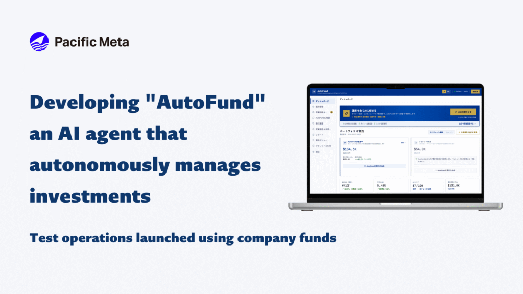 Pacific Meta, Inc. (Minato-ku, Tokyo; CEO: Shota Iwasaki) has developed “AutoFund,” an asset management product that uses AI agents to autonomously execute transactions on the blockchain, and has begun test operations using company funds.