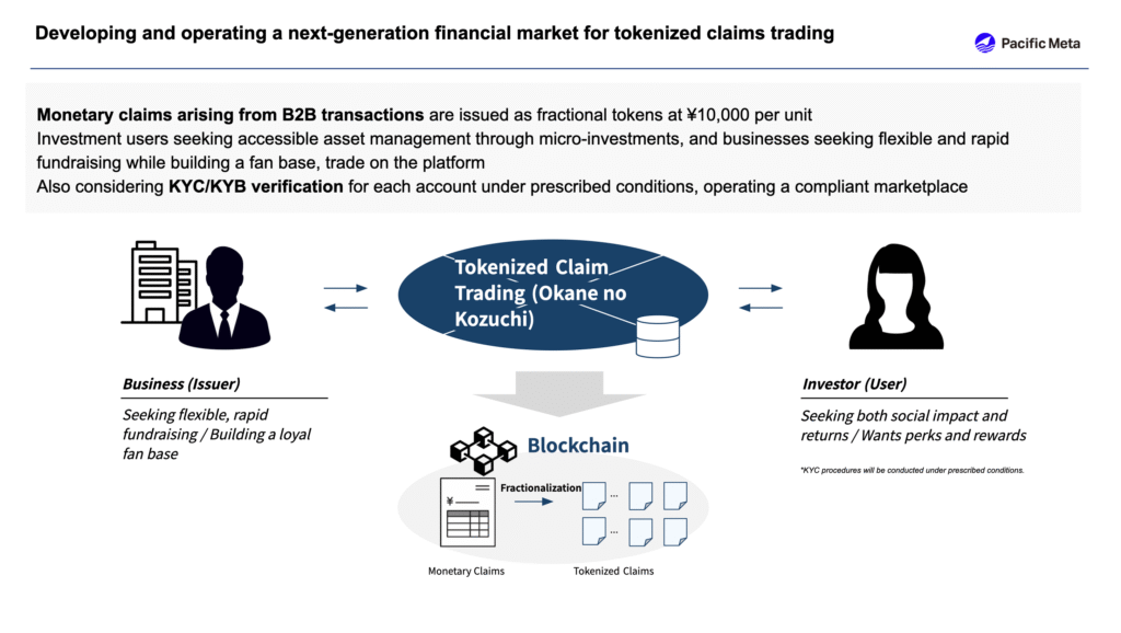 Pacific Meta Inc. (Headquarters: Minato-ku, Tokyo; CEO: Shota Iwasaki; hereinafter “the Company”) is pleased to announce the commencement of development of a new DeFi (Decentralized Finance — a system that aims to automate financial transactions through programs on the blockchain, without relying on traditional financial institutions) infrastructure utilizing smart contracts (programs that automatically execute transactions based on predetermined conditions). This initiative leverages the expertise in tokenizing monetary claims (recording and managing them as digital data on the blockchain) cultivated through “Okane no Kozuchi,” a monetary claims marketplace operated by its subsidiary, Kirifuda Inc. (Headquarters: Chuo-ku, Tokyo; Representative: Hideyuki Akagawa; hereinafter “Kirifuda”).