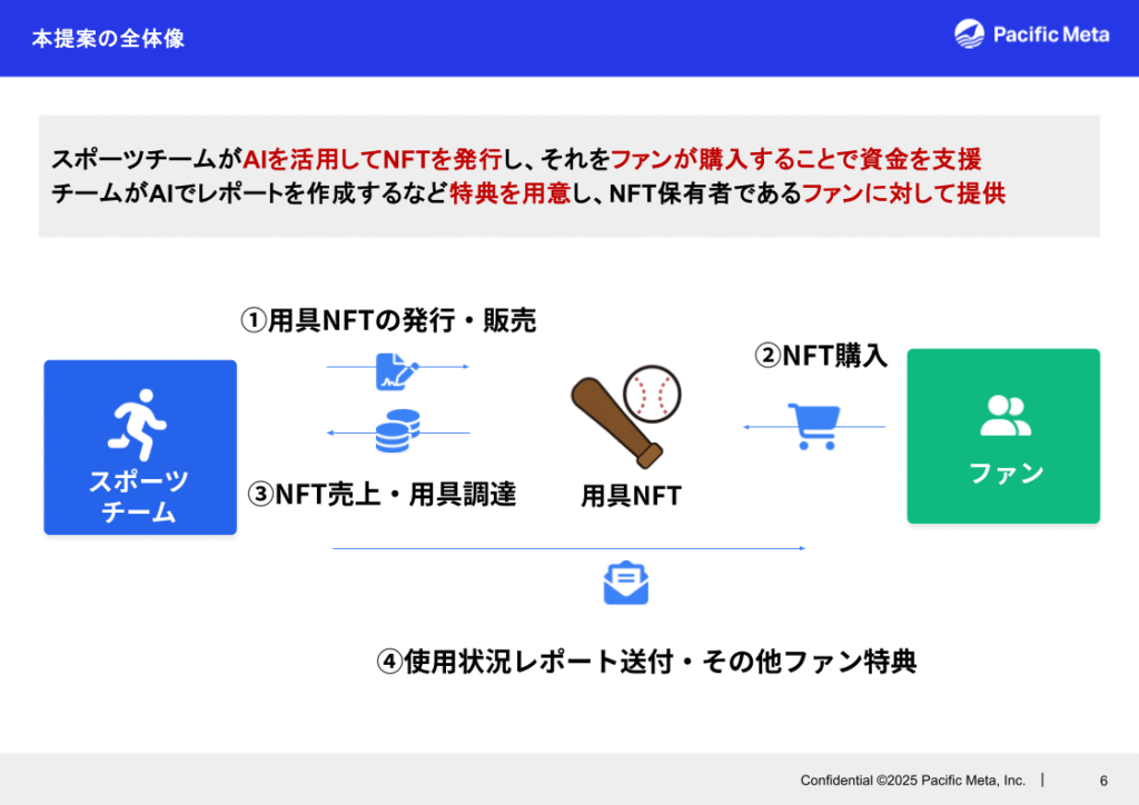 Pacific Meta Inc. (Headquarters: Minato-ku, Tokyo; CEO: Shota Iwasaki; hereinafter “Pacific Meta”), a blockchain consulting company, participated in the AI Sandbox Category of the open innovation event “Hiroshima SPORTS × TECH Nomination Conference 2025,” held in Hiroshima Prefecture on Friday, November 21, 2025, and achieved the highest score in the category, winning first place.