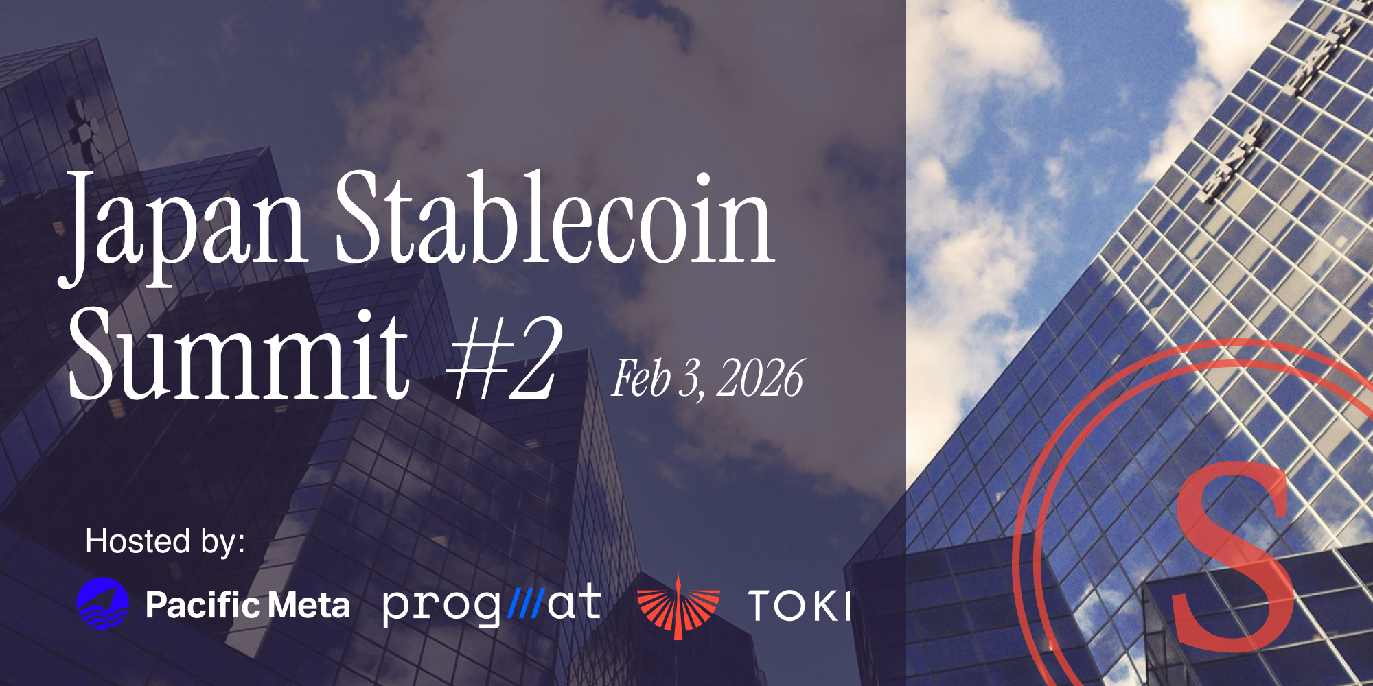 Pacific Meta、TOKI FZCO、Progmatの共催のもと、最新の制度動向や技術的トピック、国内外の活用事例の紹介に加え、ステーブルコイン活用を考える企業が出会い、次の一歩を考える場をご提供します。