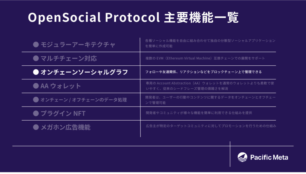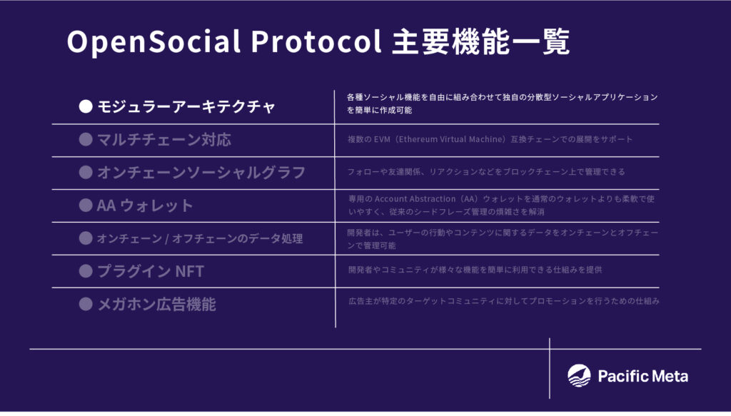 - OpenSocial Protocolは、分散型ソーシャルアプリケーションを構築するためのマルチチェーン対応インフラを提供するプラットフォームである