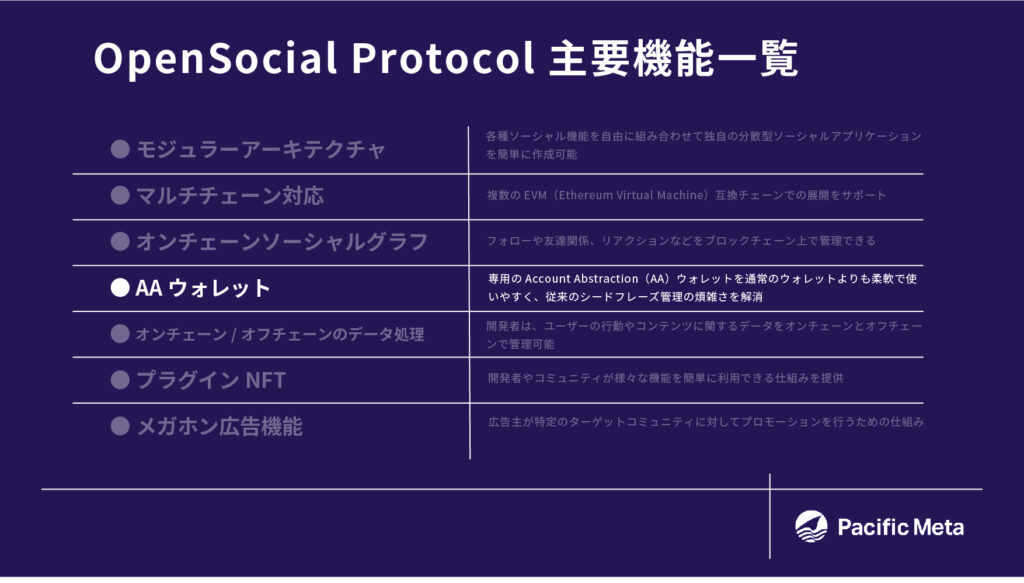 OpenSocial Protocol専用AAウォレットの主な特徴: