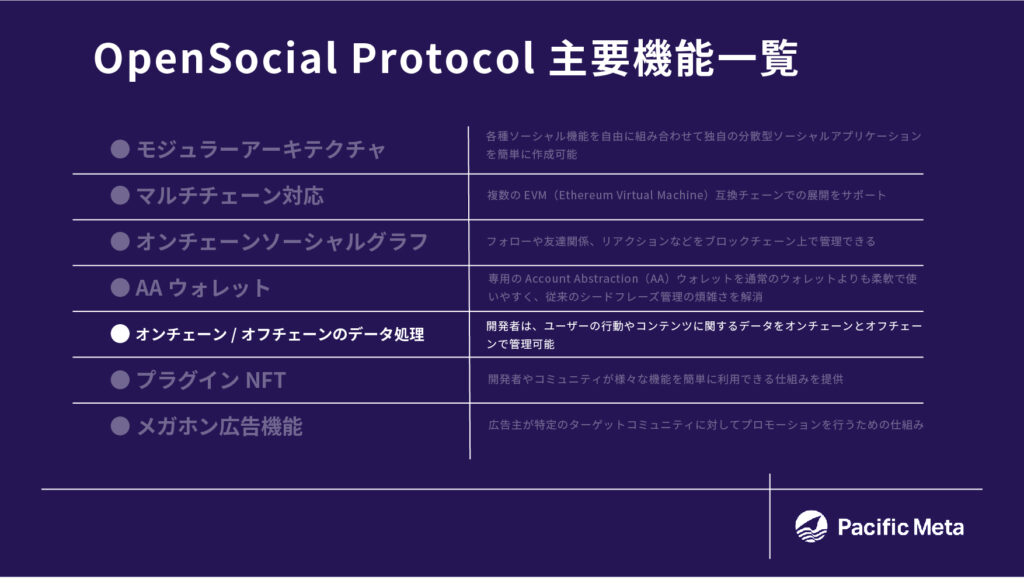 オンチェーンとオフチェーンのデータ処理を組み合わせることで、OpenSocial Protocolは柔軟かつ効率的なソーシャルdAppの運営を実現します。