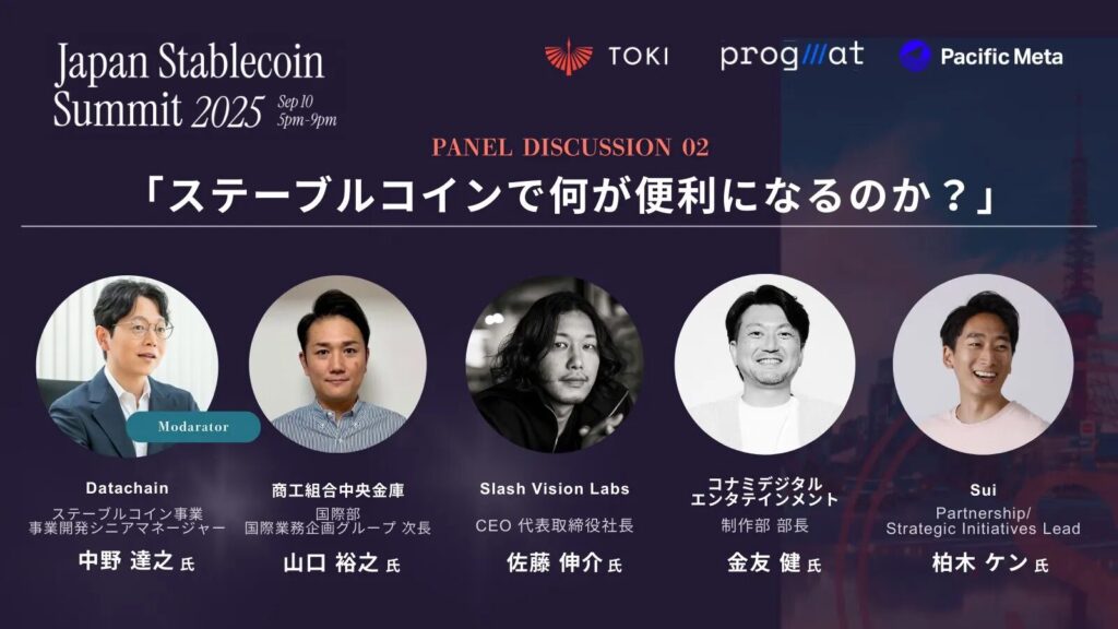 2025年9月、東京・高輪にて、日本におけるステーブルコイン実装の最前線を議論する「Japan Stablecoin Summit 2025」が開催された。