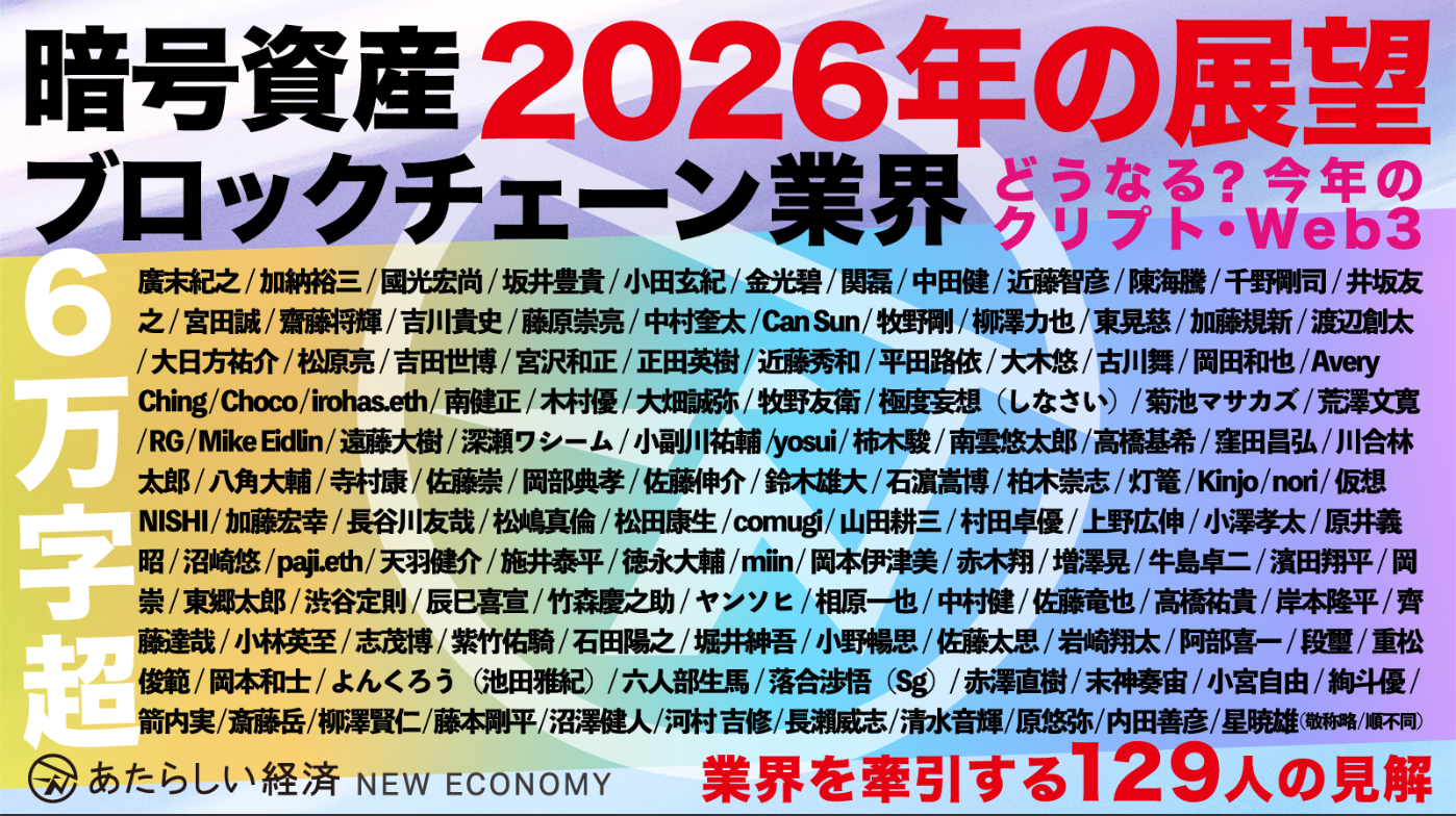 記事では、「あたらしい経済」の年始特別企画として、ブロックチェーン・暗号資産業界を国内外で牽引するプレイヤーや有識者が、「2026年の展望」をテーマに、今後の本領域におけるビジネスのヒントやインサイトを寄稿しています。