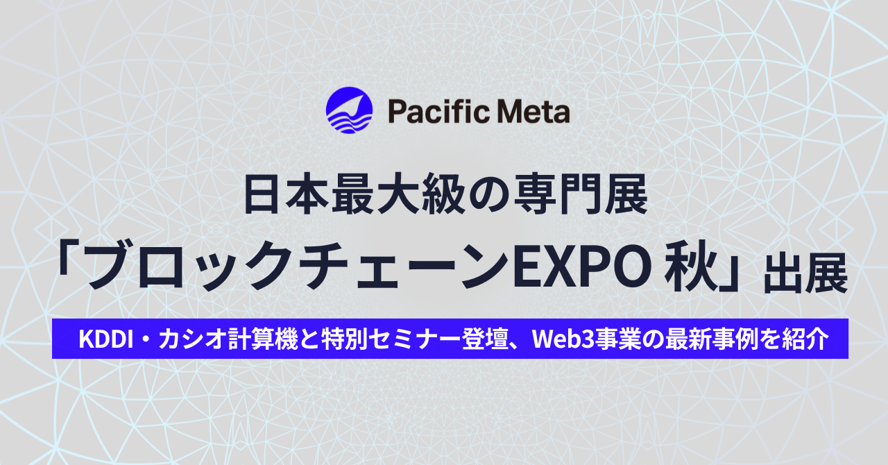 Pacific Meta、日本最大級の専門展「第6回 ブロックチェーンEXPO【秋】」に出展—KDDI・カシオ計算機と特別セミナー登壇、Web3事業の最新事例を紹介—