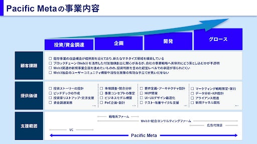 ブロックチェーンやトークンを活用した事業が、社会実装へと迅速に到達できるよう、人材・ノウハウ・ネットワーク・投資のあらゆる側面から伴走しています。